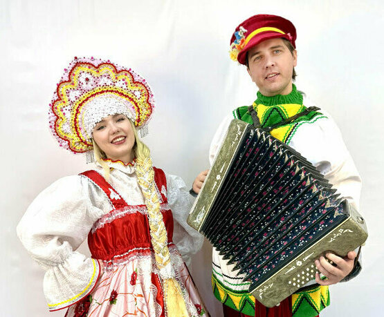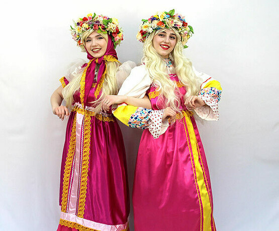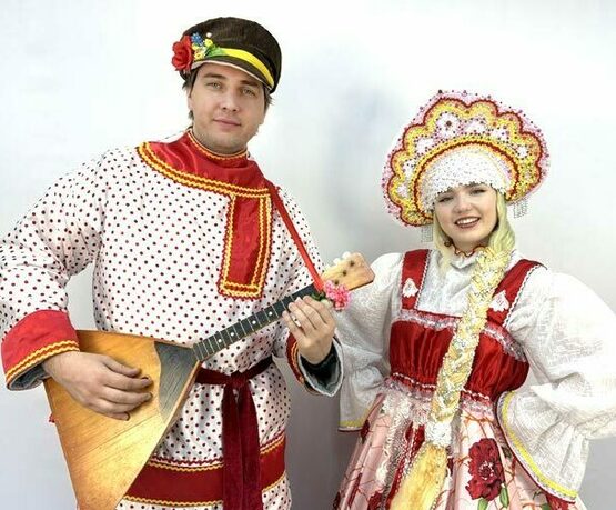 Аниматор добрый молодец и аниматор красная девица — вместе они проведут весёлые хороводы и старинные забавы.