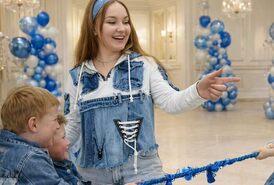 Детский аниматор на джинсовой вечеринке, быстро находит контакт с детьми и вовлекает каждого в игру. Музыка, движение и понятные задания создают атмосферу дружеского праздника.