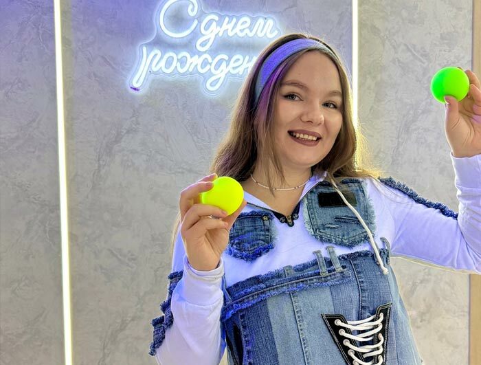 Отмечали день рождения в стиле джинсовой вечеринки дома. Пространства немного, но аниматор отлично подстроилась. Танцевально и весело.
