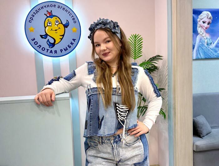 Детский аниматор на джинсовой вечеринке встречает гостей, помогает детям быстро освоиться и задает дружелюбный тон праздника.