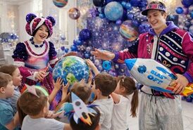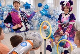 Мы проводим день рождения ребёнка с аниматором в Челябинске в формате космического приключения: дети становятся космонавтами, играют, выполняют задания и активно проводят время.