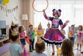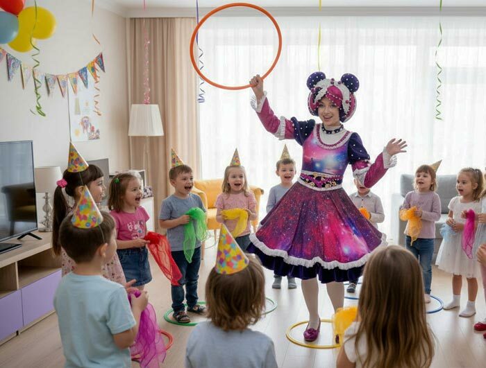 Компактный формат дня рождения ребенка с аниматором для ограниченного пространства.