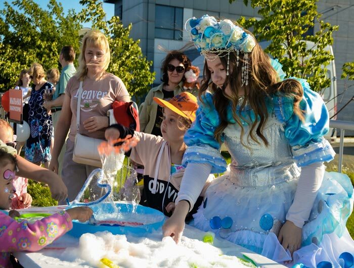 Это не просто шоу мыльных пузырей в Челябинске, а полноценный интерактивный мастер-класс, где участвуют все дети.