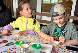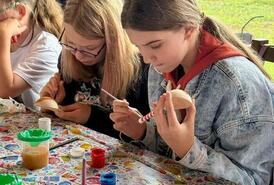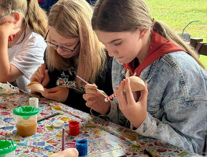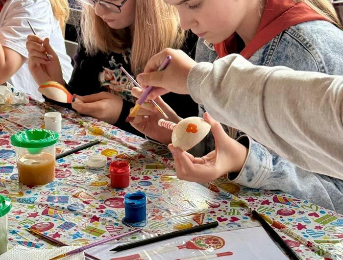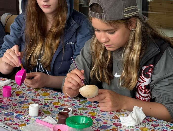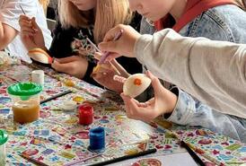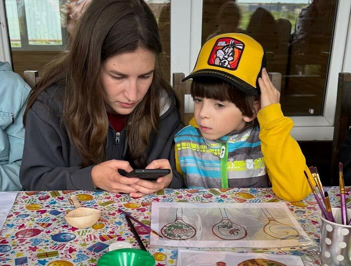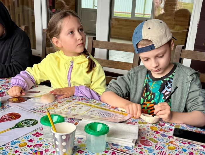 На мастер-классе по росписи ложек дети получают помощь и внимание, благодаря чему у всех получается красивый результат.