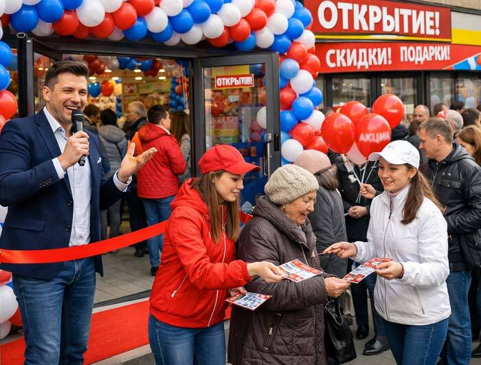 Масштабные промоакции в торговых центрах, на улицах города, открытия магазинов — всё это требует яркой подачи и вовлечения аудитории.
