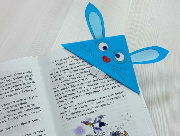 В результате у каждого ребенка получается своя уникальная поделка: кто-то делает закладку в виде зайчика, кто-то — котика, а кто-то придумывает собственного персонажа. Такие закладки удобно надевать на угол страницы, и они действительно используются потом в книгах, а не пылятся на полке.
