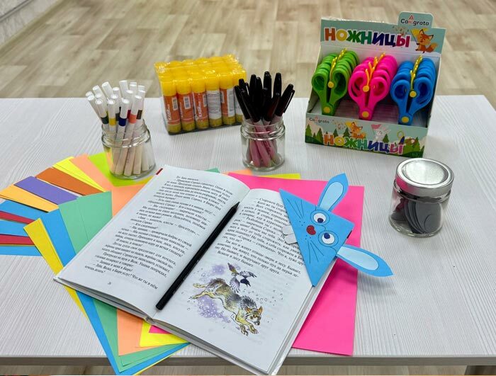 Сначала ведущий знакомит детей с материалами: цветной бумагой, заготовками, декоративными элементами. Затем показывает, как правильно сложить основу закладки. Дальше начинается самая любимая часть — оформление.