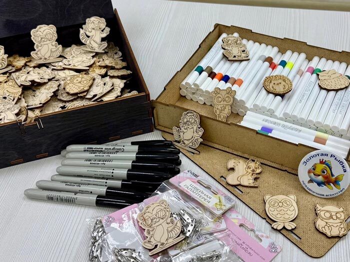 Дети получают заготовку из дерева и превращают ее в уникальный арт-объект: раскрашивают, добавляют узоры, персонажей и яркие цвета.