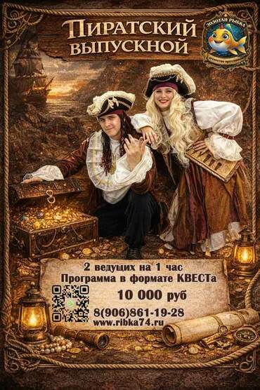 Праздновали выпускной начальных классов вместе с агентством "Золотая рыбка". Формат пиратского квеста для детей оказался удачным: задания интересные, темп комфортный, никто не устал. Для возраста 5–7 лет — прям то, что нужно.
